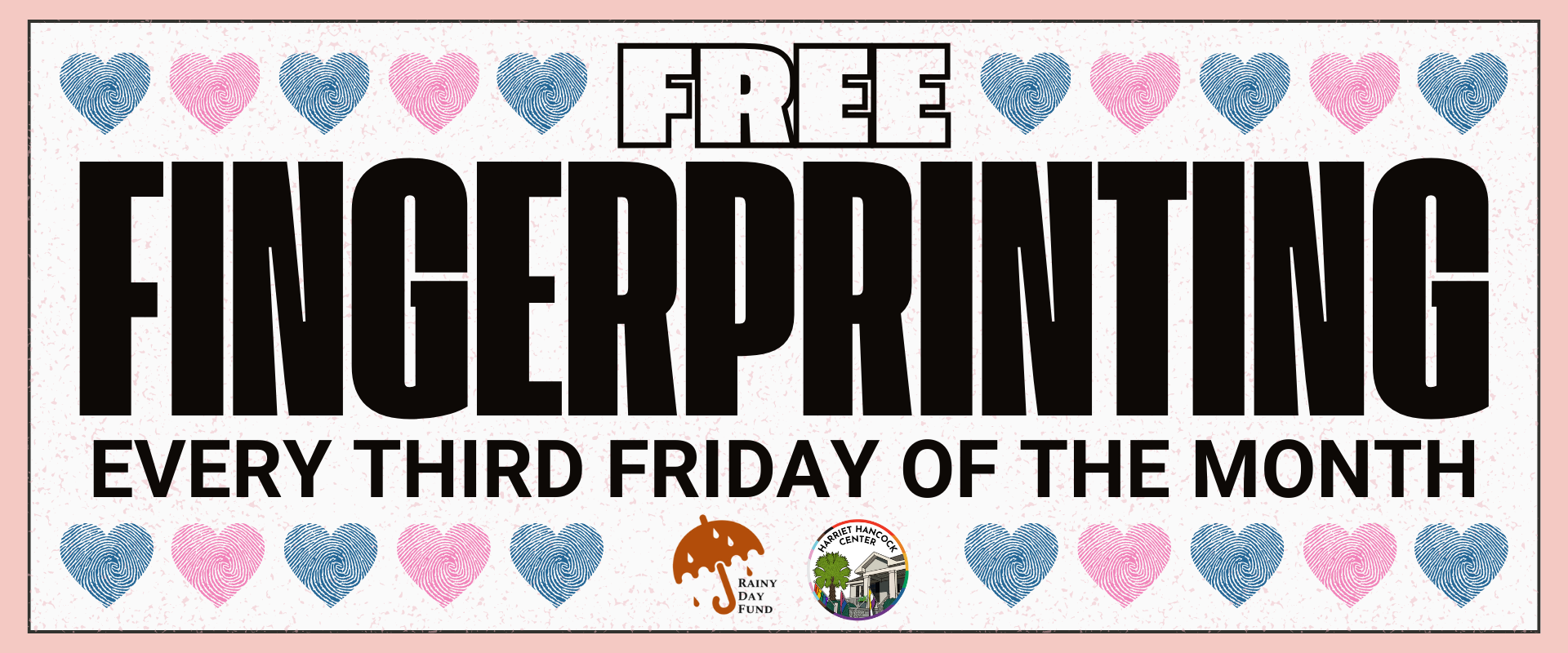 We host fingerprinting days at the Harriet Hancock Center on the Third Friday of every month from 1pm-4pm! See our community calendar to check when the next fingerprinting clinic is.